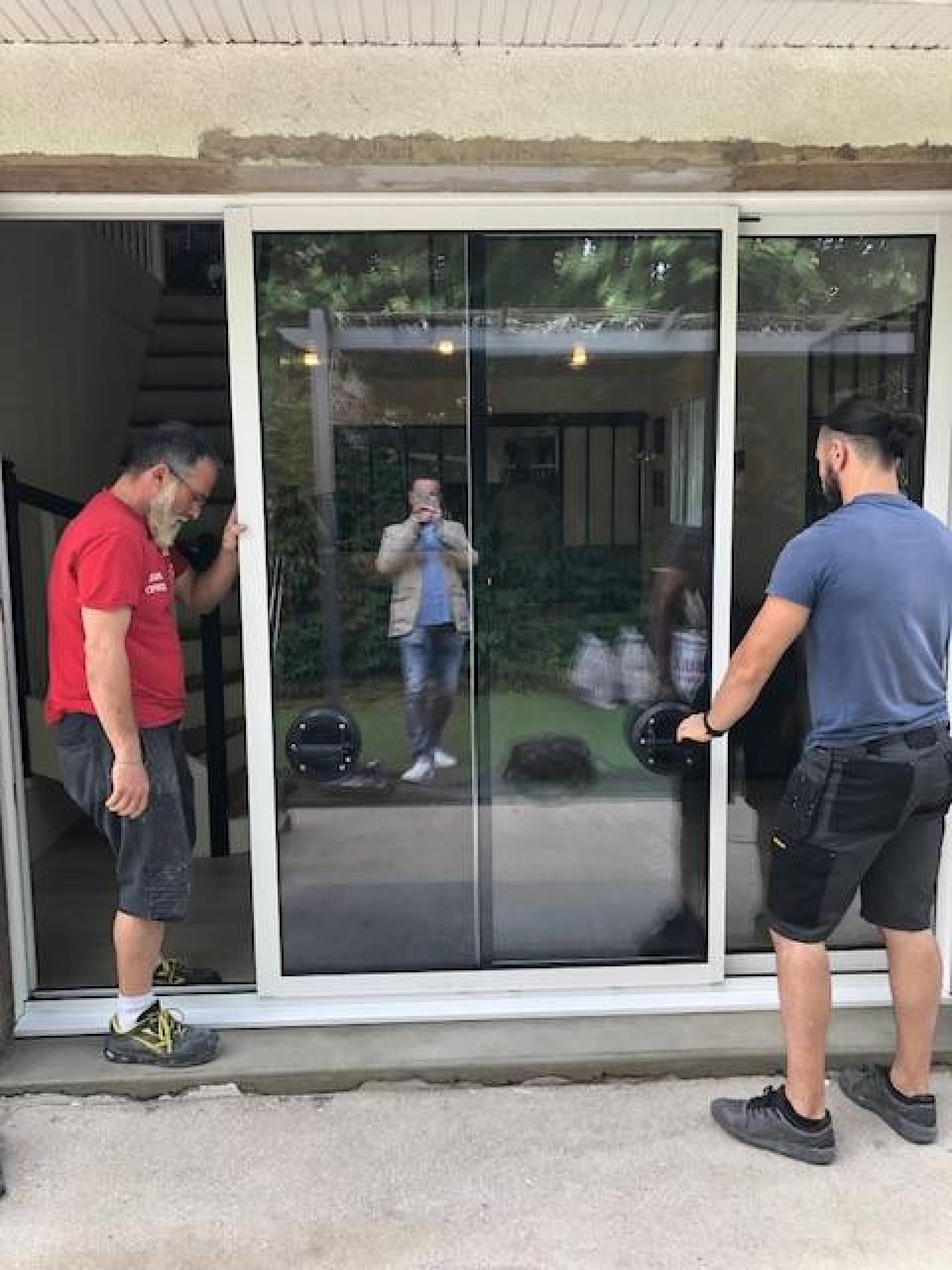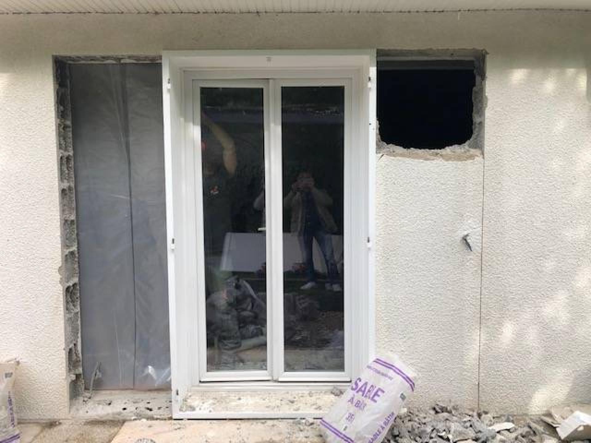 Agrandissement et remplacement d'une porte fenêtre PVC en coulissant deux vantaux en Aluminium à Corbas région Rhône Alpes Auvergne