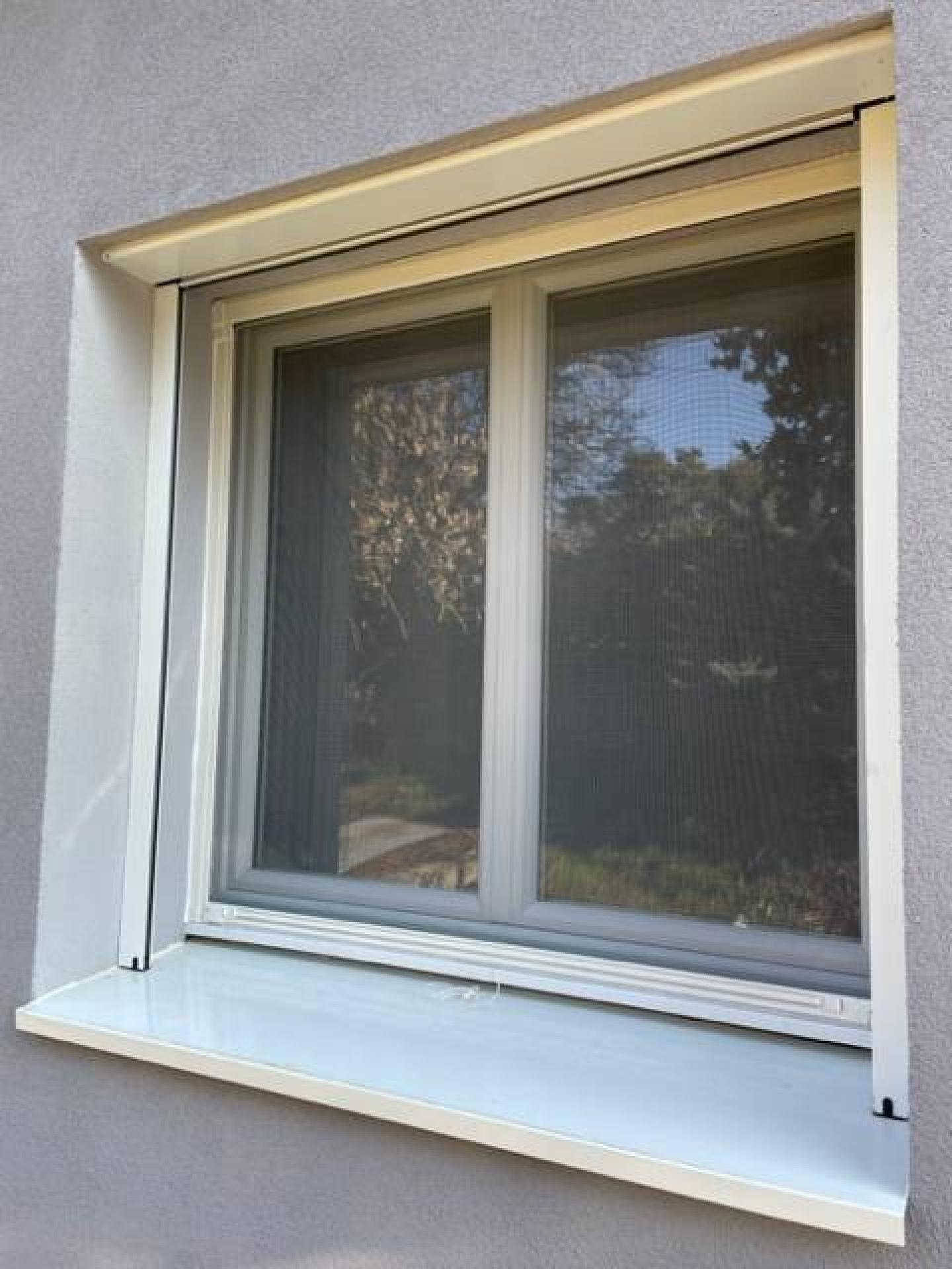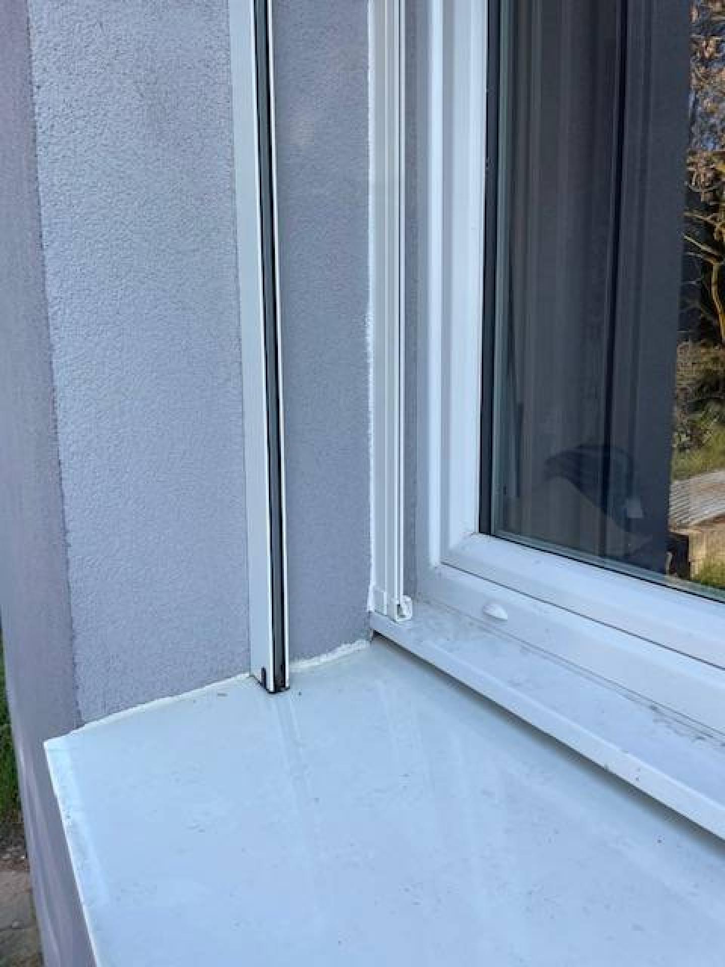 Nous avons réalisé une dépose total des fenêtres bois et une repose des nouvelles en PVC avec des volets roulants ITE (isolation thermique par l'extérieur), et une fois l'installation de l'isolant de la façade sur l'ensemble de l'habitation nous avons pu mettre en place les moustiquaires de marque MARITON.